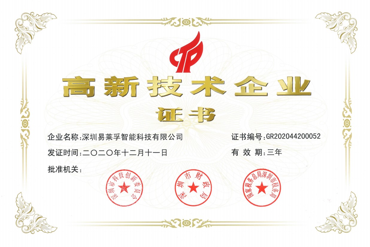 喜訊|熱烈祝賀易萊孚榮獲“高新技術企業(yè)”證書!